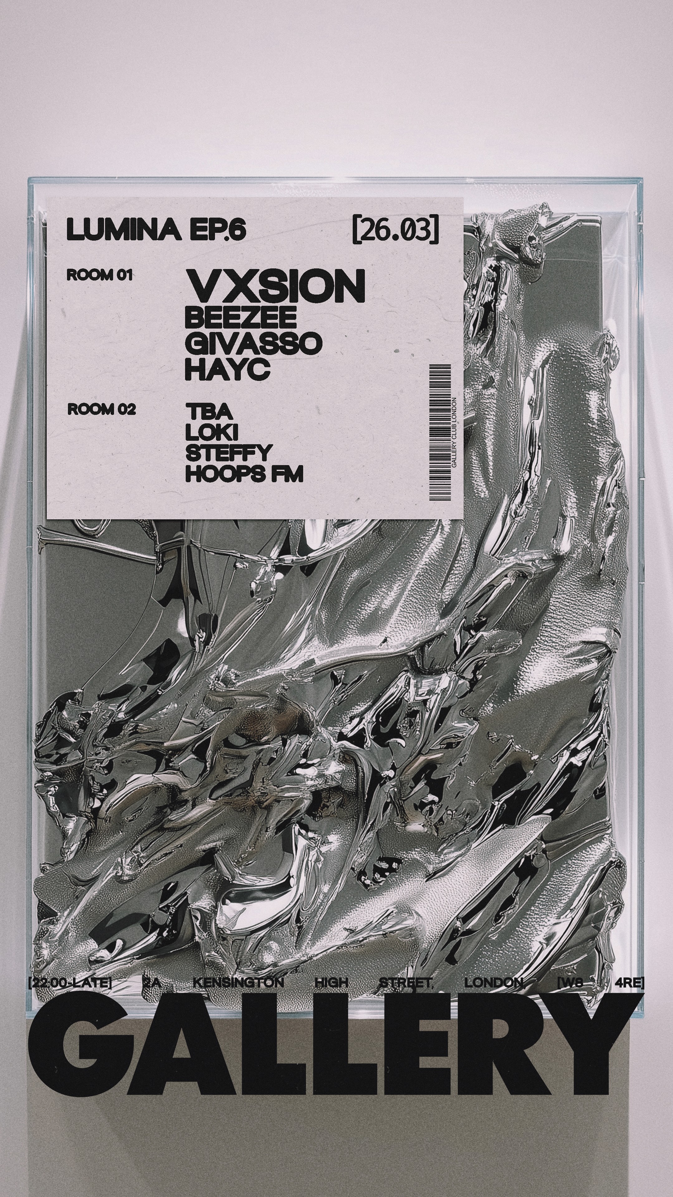 Season III descends into a mysterious digital void where abstract 3D topography redefines the club’s infinite boundaries. Through a striking palette of bold crimson and deep black, the invisible currents of sound are visualized as a fluid metallic landscape. This evolution merges architectural precision with the raw, high-fashion energy of the underground.